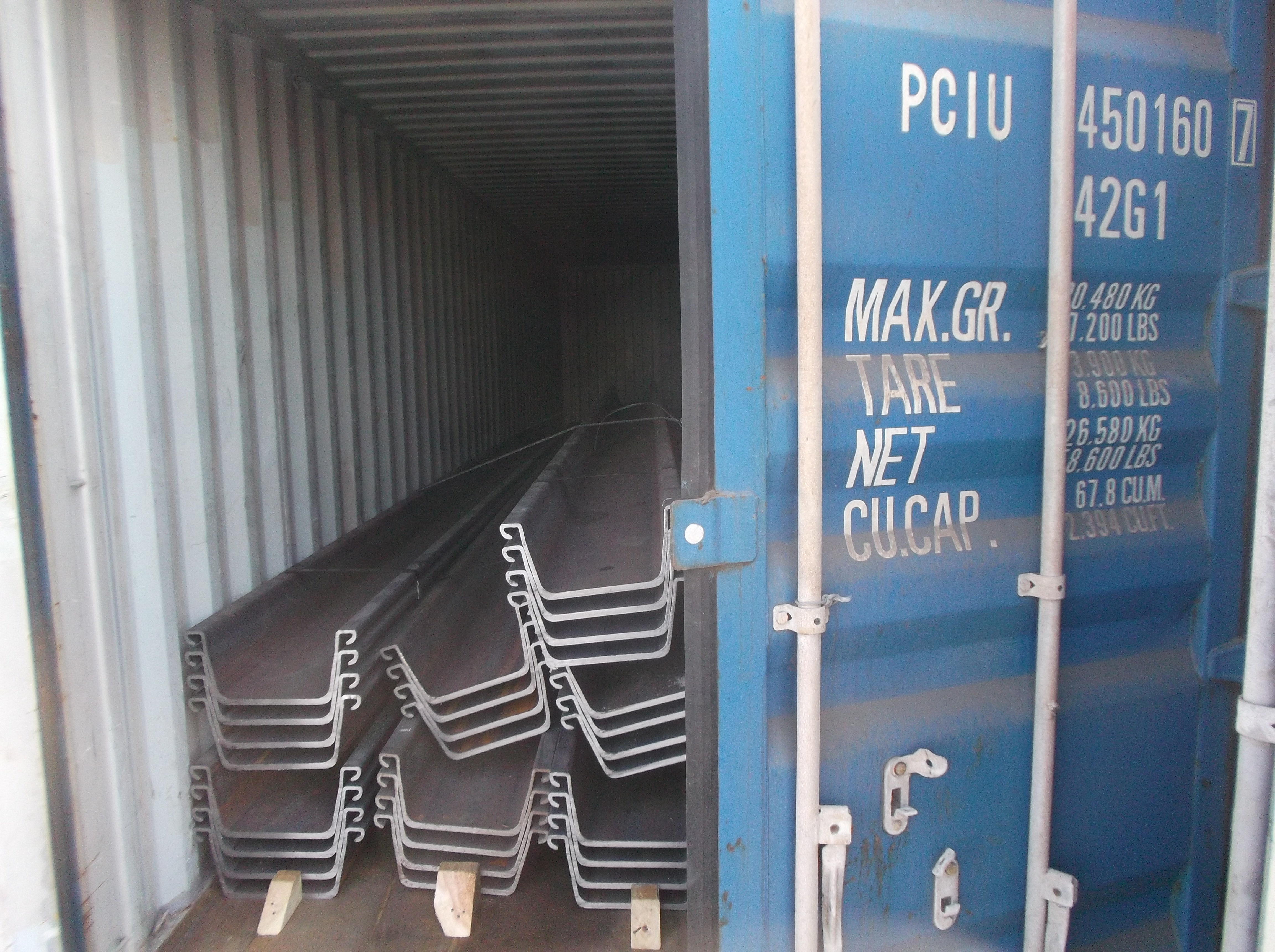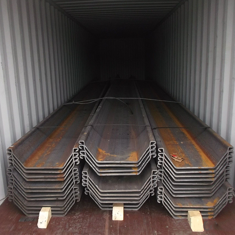 Steel sheet pile packaged with steel strip and waterproof cloth covered, then shipped with containers