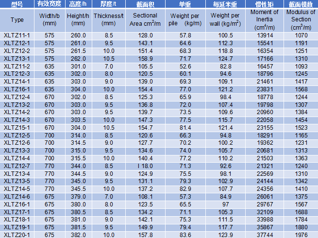 1) The section width is large, and the pile sinking effect is remarkable. 2) The section modulus is large. 3) The higher moment of inertia enhances the rigidity of steel sheet pile wall and reduces the structural deformation. 4) Excellent anti-corrosion effect. 5) The construction is simple and the construction period is shortened. 6) Using steel sheet pile materials can simplify the complexity of inspection materials and system materials. 7) More readily available: Cold-Formed sheet piles are produced at higher quantities than hot-rolled sheet piles, increasing the number of rolling dates to choose from. Typical production time is 2 weeks 8) Cost-effective: Cold-Formed sheet pile is about 30-40% less expensive to produce than hot-rolled sheet pile 9) Less expensive to transport: Due to the larger number of cold- formed sheet pile manufacturers, there is a higher chance that you can find a mill located nearby than if you were to purchase hot- rolled sheet piles. Additionally, the larger selection of cold-formed sheet piles may allow you to find sections with a section modulus closer to your design specifications without a large increase in weight 10) More flexibility in positioning: Cold-formed sheet pile interlocks allow for a 25-degree rotation, rather than the 7-to-10-degree rotation allowed with hot-rolled sheet pile using ball-and-socket interlocks