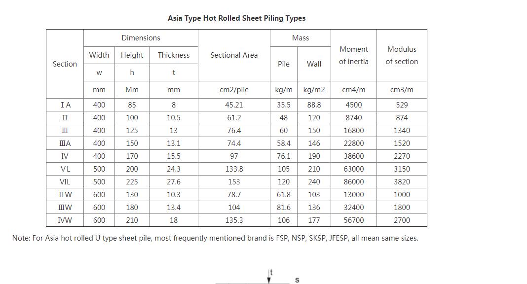 U type sheet piles are U type profiles with interlock at both sides to form the continuous walls,which has center lines in the middle of the double U section wall. U profile sheet piles can stack more stable than any other shapes,so can be used both in permanent and temporary projects. Millons of tons of U-shaped hot rolled sheet piles have been used all over the world for al kind of structures formore than 100 years.U profile sheet pilingwas the tradition, especially in Aisa.